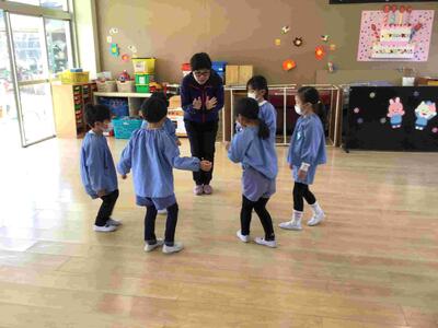 英語の曲に合わせて歌を歌ったり、色探しをしたりして遊びました。