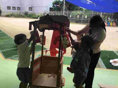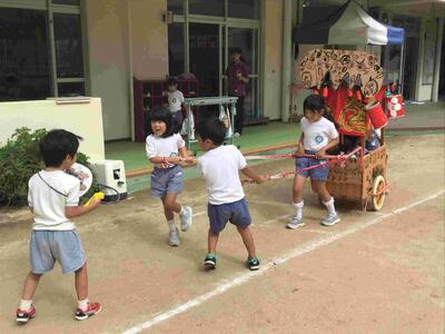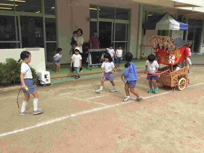 「エンヤサー」「エンヤサー」だんじりが園庭を回りました