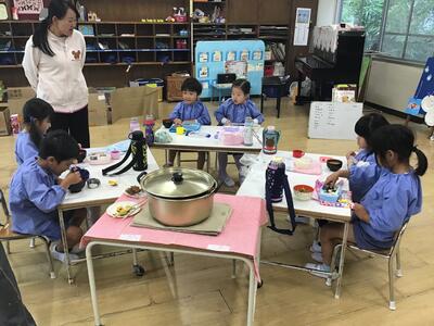 そして、大きなお鍋でだしをとると、いい匂いが漂ってきました。