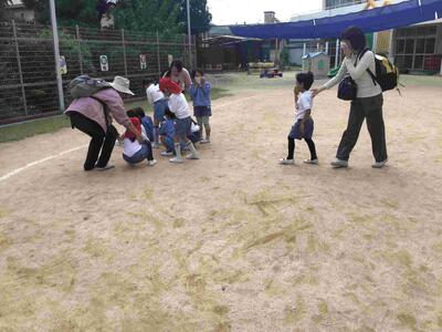 津波を想定しての水平訓練を行ったあとに、小槌幼稚園の友達と交流しました。