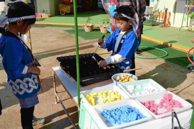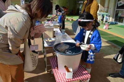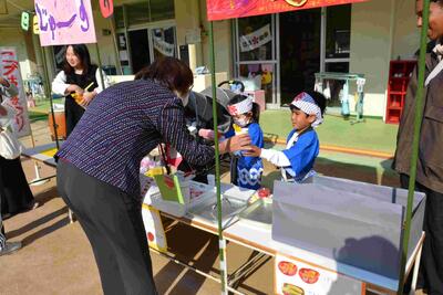 威勢のいい声が園庭に響き、家族や友達と売り買いを楽しんでいました。