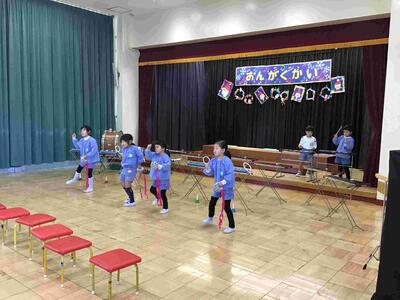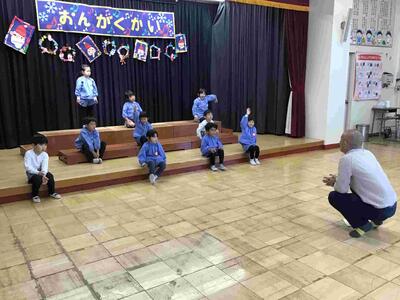 また、お隣の、のびのび学級の先生方も、子どもたちの楽器遊びや歌を見に来てくださいました。