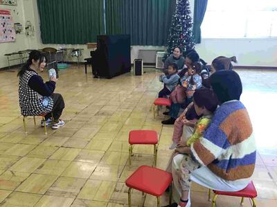 小さいお友達は、お兄さんとお姉さんの演奏を嬉しそうに見ていました。