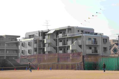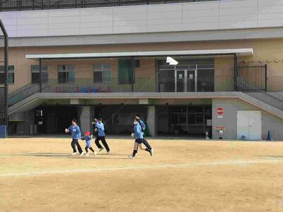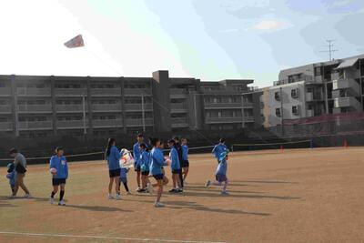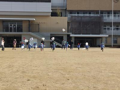 精道中学校の広い校庭をお借りして、子どもたちとメンズの方5名と一緒にたこあげをしました。