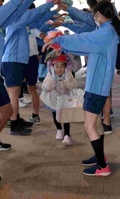 長い列車ができました。チャンピオンの運転手はいちご組の男の子。車掌さんは中学生のお姉さんでした。