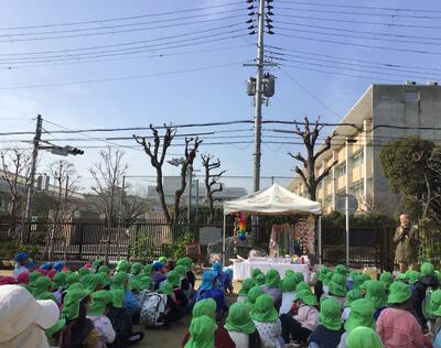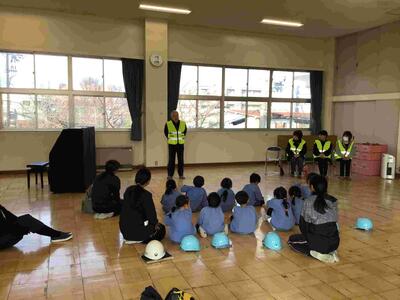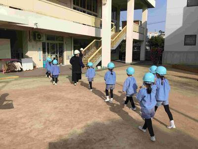 また、降園前には打出小槌長自主防災・防犯会の会長さんをはじめ4名の方と一緒に、震度7の地震が発生し、大津波警報が発令されたことを想定し、避難訓練を行いました。