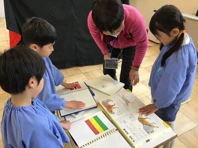その後、実際に点字を打ってくださったり、図鑑やおもちゃ、絵本などの紹介をしてくださり、子どもたちも触ってみました。