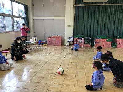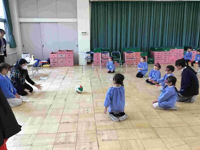 また、アイマスクをして、声をたよりにボールを転がす体験もしました。