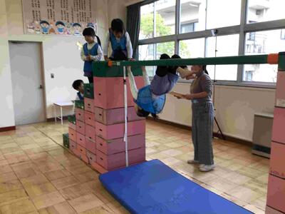 巧技台のよじ登りでは、果敢にチャレンジする姿が見られました。