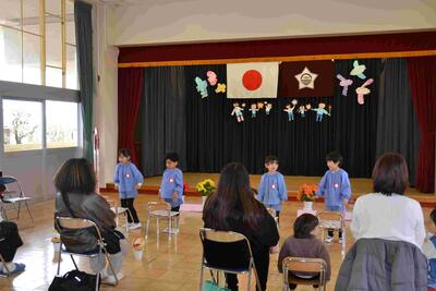 先日、年長組の卒園式に参加していましたので、入場や「ミニ思い出」も