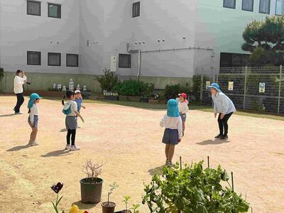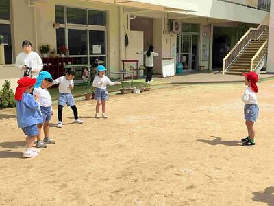 体を動かして遊ぶと心がわくわくするね 投稿: ルーム管理者 (11:39) 年長組が体操の先生になって「動物体操」をみんなでしました。 うさぎやぞう、アヒル、ヘビなどが出てくる楽しい体操です。 年長組が張り切って楽しく体操をしている姿を真似て、年少組も体操を楽しんでいました。 お天気のよい日には、体を動かして遊んでいきたいと思います。 Tweet -