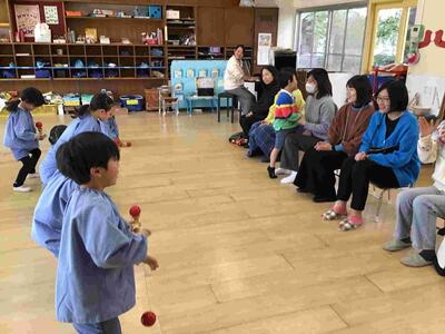 そして、本日はお世話になった同志社大学の田附教授と、講師の先生が、年長組の卒園をお祝いしに