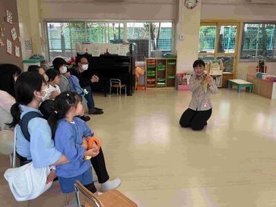 今年度初めての誕生会。年長さんはアナウンスや会場準備片づけも張り切ってしていました。